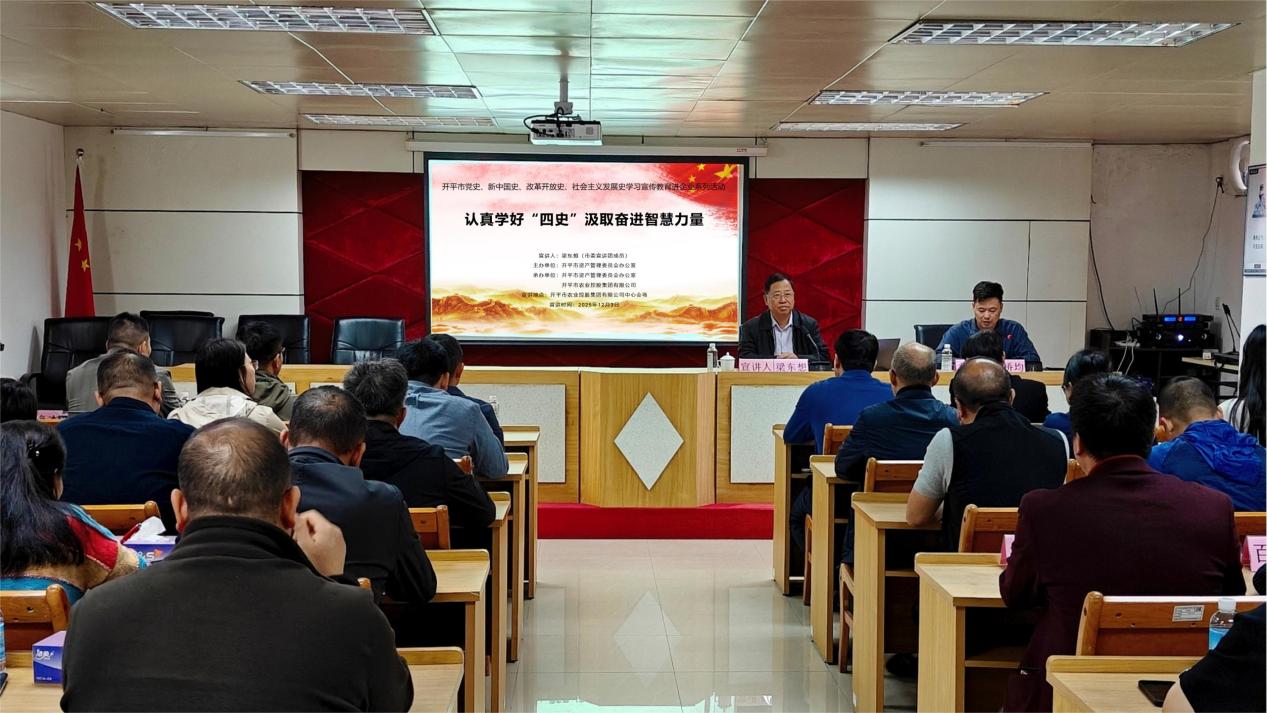 為扎實推進開平市黨史、新中國史、改革開放史、社會主義發展史的宣傳教育,引導干部職工深刻感悟蘊含于歷史中的智慧,汲取奮進的力量,為企業改革發展注入強勁動能。12月3日上午,開平市資產辦聯合市農控集團公司開展開平市“四史”學習宣傳教育進企業系列活動,邀請開平市委宣講團成員梁東想帶來一場以“認真學好‘四史’,汲取奮進智慧力量”為主題的開平市“四史”專題宣講會。集團公司全體班子成員、干部職工,下屬企業經營班子及各市場站負責人共40余人參加宣講會。 宣講中,梁東想同志以開平市黨史、新中國史、改革開放史、社會主義發展史為脈絡主線,用豐富的歷史資料、生動的語言,講述了開平紅色故事、黨和國家的奮斗歷程,讓大家深刻解讀“四史”的深刻內涵與重要意義,體會到今日美好生活的來之不易,堅定理想信念,以實際行動踐行初心使命,在新時代新征程中彰顯國企干部的擔當作為。 下一步,市農控集團公司將把學習貫徹黨的二十屆四中全會精神與深化“四史”宣傳教育有機結合,持續深化理論武裝,推動“四史”學習教育走深走實,為推進中國式現代化建設、開平市高質量發展而努力奮斗!