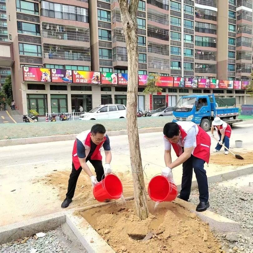 春滿人間草木欣,植樹添綠正宜時。為深入貫徹習近平生態文明思想,積極響應省委關于深入推進綠美廣東生態建設的號召,3月28日上午,公控集團辦公室黨支部聯合新路達公路工程有限公司黨支部和廣東開贏科技有限公司黨支部,前往開平市逕頭中路開展“主題黨日種春風·黨員攜手綠意濃”植樹活動,用實際行動踐行生態文明理念,為綠美開平建設貢獻國企力量。 活動現場,20余名黨員志愿者身著紅馬甲,在公控集團黨委書記、董事長伍衛良的帶領下,分組協作、配合默契,揮鍬挖坑、扶正樹苗、培土澆水,每個環節都一絲不茍。經過一番精心細致的栽種作業,新栽種的樹苗整齊排列,在春日暖陽下傲然挺立,為逕頭中路沿線披上了一襲嶄新的綠裝,成為一道亮麗的生態風景線。 本次植樹活動以"黨建紅"引領"生態綠",既有效提升了共建支部的協同效能,更是將組織優勢轉化為生態治理優勢的生動實踐。參與的黨員干部一致表示,將深入踐行"綠水青山就是金山銀山"理念,緊扣綠美開平生態建設目標,以崗位建功的實際行動,為推進“百千萬工程”、打造宜居宜業和美鄉村注入綠色動能,共同繪就開平高質量發展的生態底色。