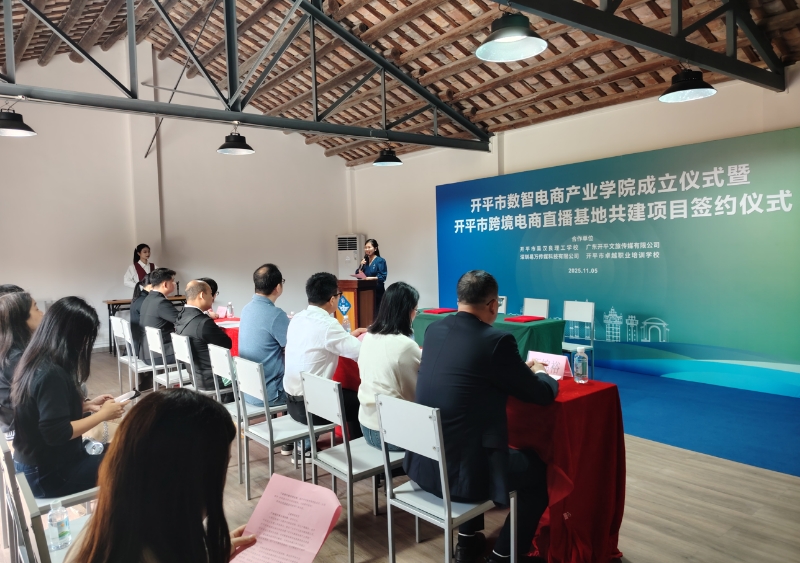 11月5日上午,開平市數(shù)智電商產(chǎn)業(yè)學(xué)院成立儀式暨開平市跨境電商直播基地共建項(xiàng)目簽約儀式在三埠街道荻海埠舉行,標(biāo)志著開平市在深化產(chǎn)教融合、搶抓數(shù)字經(jīng)濟(jì)與跨境電商發(fā)展方面邁出關(guān)鍵一步,為開平市產(chǎn)業(yè)升級與經(jīng)濟(jì)高質(zhì)量發(fā)展注入新動能