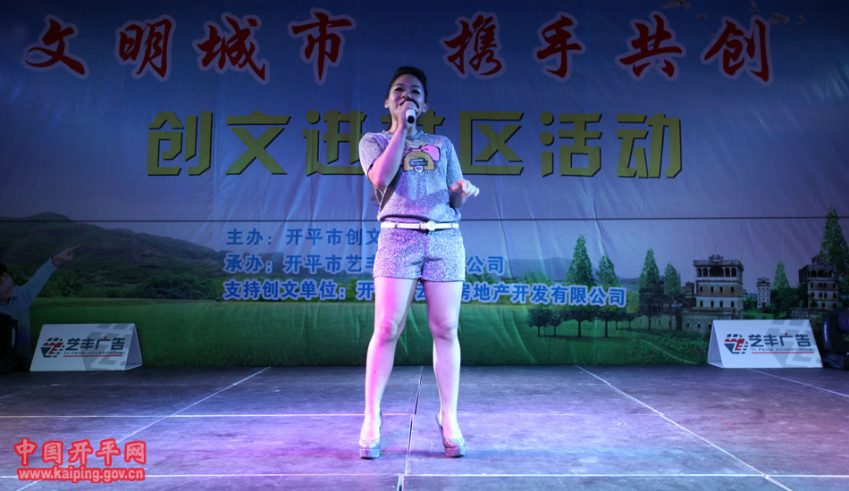 9月20日晚,開平市創文進社區活動在益華廣場對面某小區門口舉行,讓廣大市民參與創文、支持創文。