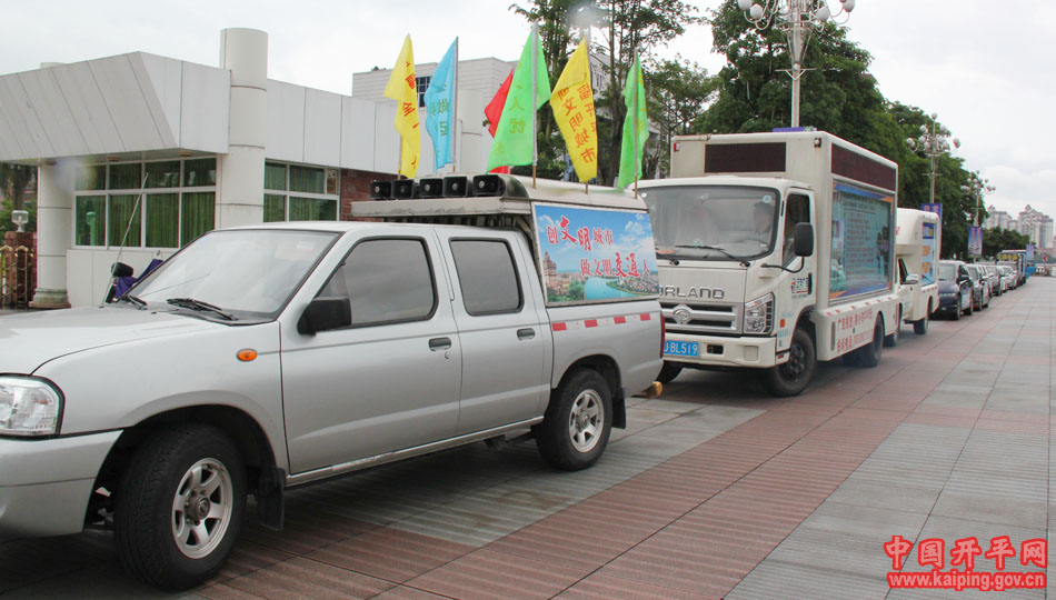 創(chuàng)廣東省文明城市,做文明有禮開平人。7月24日下午,市創(chuàng)文辦、市交警大隊(duì)聯(lián)合我市10多家商家在城區(qū)內(nèi)開展主題為“文明城市 你我參與”的車隊(duì)巡游宣傳活動(dòng),進(jìn)一步加大我市創(chuàng)文宣傳力度。