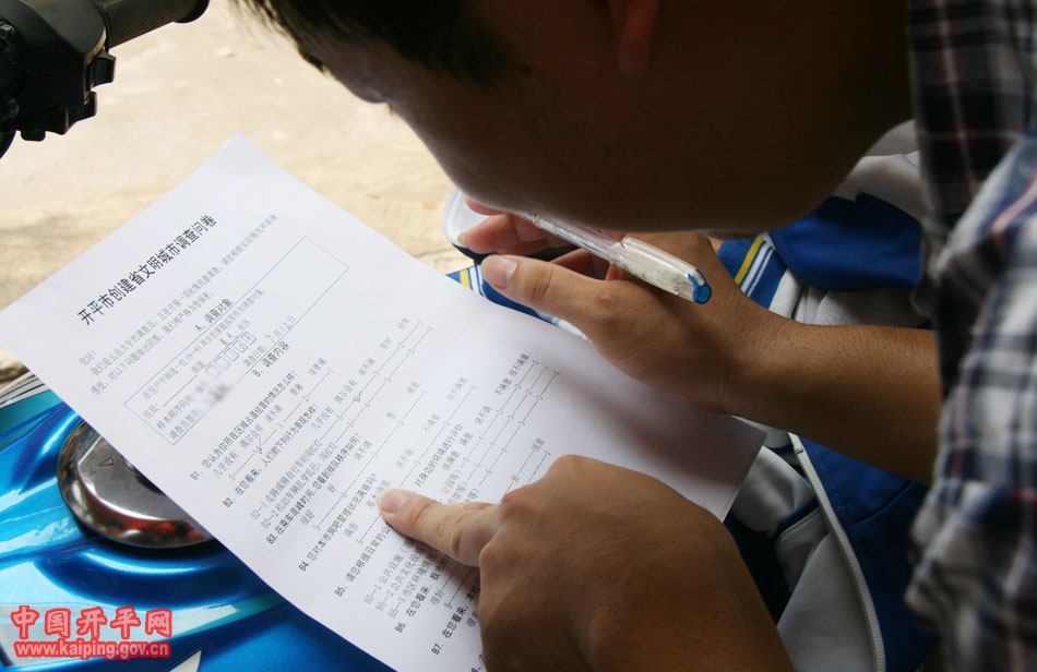 下午三時許,調查人員佩戴工作證在居委會工作人員的陪同下,深入東興、僑園、幕沙、港口、長沙東、長沙西、新興、新安、東河、荻海、祥龍社區共11個社區,隨機抽取住戶進行入戶問卷調查。此外,還有部分師生到旅行購物街道、城市廣場、太空網吧、曙光路十字路口等共計16個定點進行實地考察。