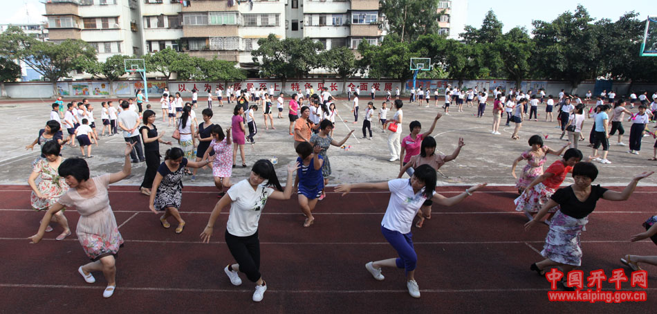 書香校園讀書吧前,學校為各個年級獲得“書香家庭”稱號的66個家庭頒發證書,鼓勵青少年和家長同閱讀,共呼吸,徜徉書海吸取養分,構建學習型家庭;班級教室里,四年級“文明出行,禮貌待人”和六年級“畫出我心目中的文明城市”主題班會氣氛熱烈,學生以各種形式展示“文明”,描繪“文明”;體育操場中,學生和家長或跳健康舞,或踢毽子,或跳繩,其樂融融;校外街道上,五(2)班組織全班同學拿著掃帚、垃圾鏟上街清掃商鋪門前的道路,歲被塵土飛揚嗆得流眼淚,卻仍樂在其中,為能貢獻力量心生歡喜。