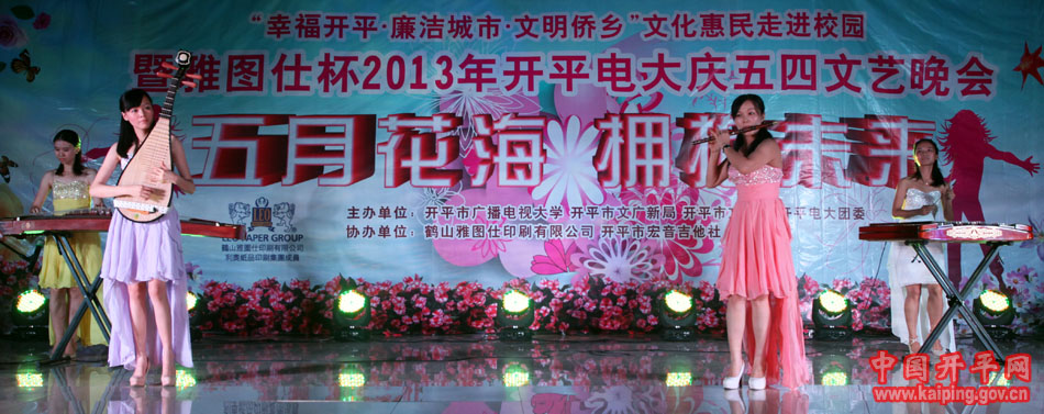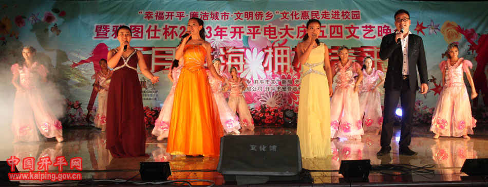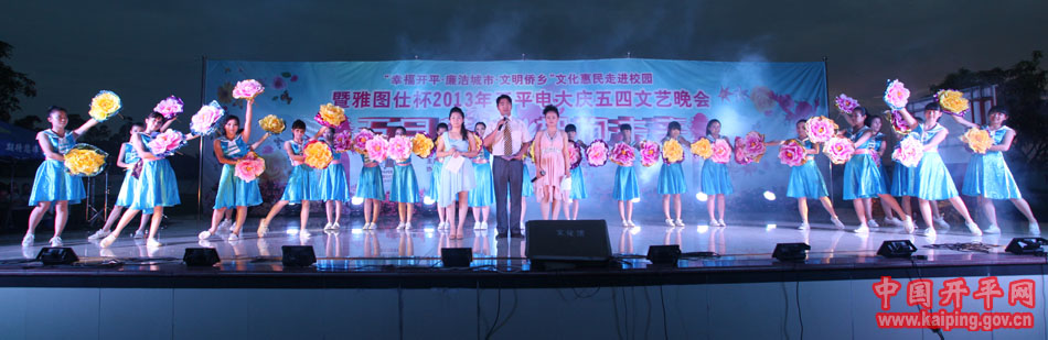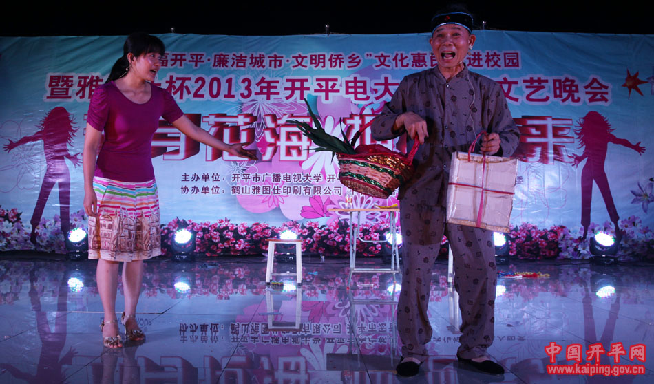 6月3日晚,“幸福開平·廉潔城市·文明僑鄉(xiāng)”文化惠民——走進(jìn)校園活動(dòng)在開平電大熱鬧上演。市政協(xié)副主席、廣播電視大學(xué)校長(zhǎng)關(guān)開宗,市委組織、市文廣局、市文化館等部門領(lǐng)導(dǎo)到場(chǎng)觀看了晚會(huì),并為該校鄉(xiāng)土文化人才培養(yǎng)基地民歌、表演藝術(shù)人才培養(yǎng)示范點(diǎn)揭牌。