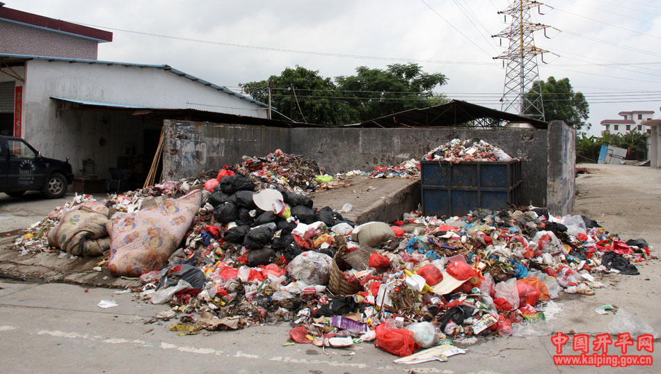 逕頭垃圾中轉站原來的作用只是收集逕頭城區部分的垃圾。按照開平市農村垃圾處理方案要求,各村(居)委會應在各村設置垃圾容器,鎮(街道)自行把收集到的垃圾運送到市垃圾場去處理。開平市環衛處副主任方錦安:“但是,在逕頭居委會的農村垃圾就這樣倒來這里。他們又不是倒進斗里,而是倒落地面,我們已經提醒他們很多次了,他們每次都沒有整改。一般10日左右就運一次垃圾出來這里,用簡易車、手扶機全倒到地面,很不合作。”
