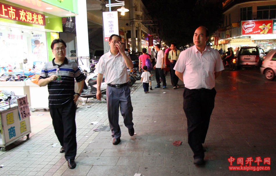 市委常委、市委宣傳部部長陳靖在步行街西邊檢查環境衛生