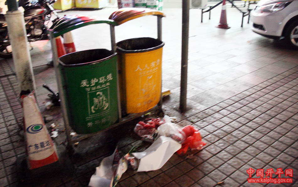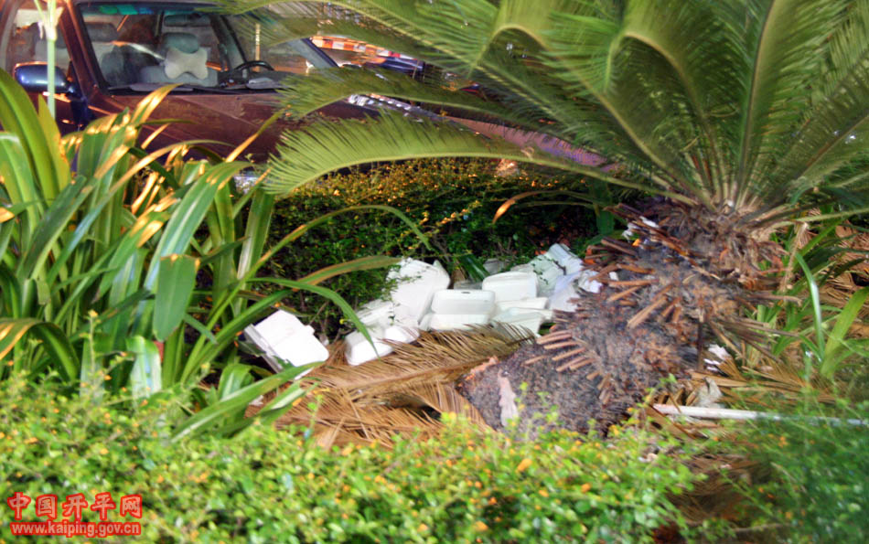 而海怡園樓下臨江的商鋪,“門前三包”做得不夠到位,部分商鋪在關電后用塑料袋把垃圾嚴嚴實實地包裝好放在店門口,但更多的隨意把垃圾扔在店前的花圃附近,甚至用一次性飯盒填滿花圃。
