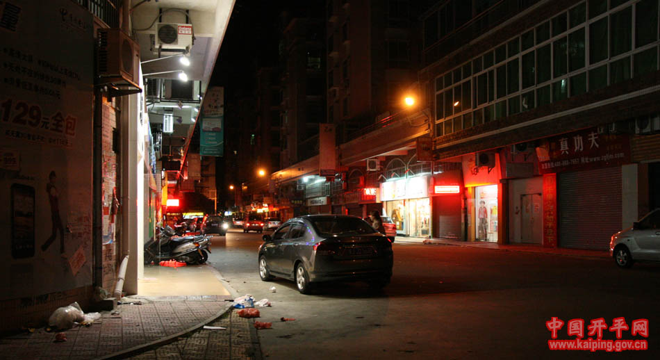 步行街西邊橫七豎八的私家車和滿地垃圾