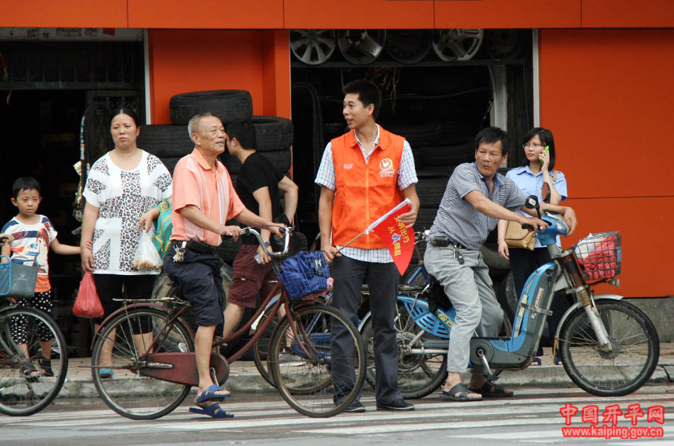 5月16日下午,開平市42名中青年干部身穿義工服走上街頭,開展文明交通行為勸導活動,共同為我市創建省文明城市出一份力量。