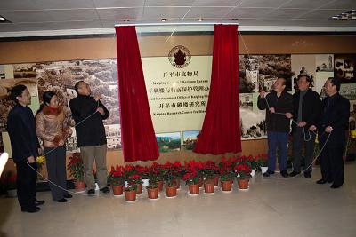 開平市政協(xié)主席譚德榮代表開平市委、市政府對前來參加揭牌儀式的領(lǐng)導(dǎo)、專家表示熱烈的歡迎,對多年來關(guān)心、支持開平市文物保護(hù)、研究事業(yè)的各位領(lǐng)導(dǎo)、各有關(guān)部門和各界人士表示衷心的感謝。他指出,開平市文物資源豐富,擁有世界文化遺產(chǎn)1處,全國重點文物保護(hù)單位1處、中國歷史文化名村1處、中國歷史文化名鎮(zhèn)1處、省級文物保護(hù)單位3處、縣級文物保護(hù)單位19處,另有重要研究開發(fā)價值的文物古跡200多處,是一個名符其實的文化大市。市委、市政府歷來十分重視文物的保護(hù)研究工作,于2000年正式啟動開平碉樓與村落“申遺”工作,并于2007年6月成功申報世界文化遺產(chǎn)。為了做好文物的保護(hù)研究工作,我市先后成立了華僑博物館、碉樓研究所、文物局等機(jī)構(gòu),制訂了相應(yīng)的文物保護(hù)法規(guī),將每年的六月定為“碉樓保護(hù)月”,投入大量的資金用于文物保護(hù)工作,并多次與高等院校、科研機(jī)構(gòu)、著名企業(yè)聯(lián)辦了學(xué)術(shù)研討會。