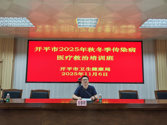 為切實做好我市秋冬季傳染病防治各項工作,持續提升醫務人員對重點傳染病的早期識別、規范診療等能力,11月6日下午,開平市衛生健康局舉辦開平市2025年秋冬季傳染病醫療救治培訓班,全市醫療機構分管領導及相關科室負責同志參加培訓。