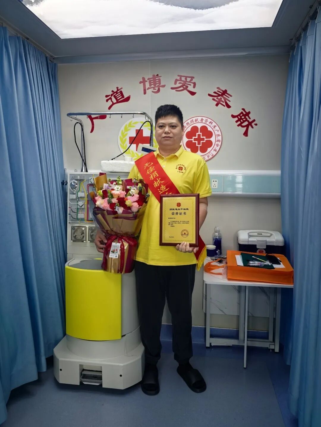 謝健勇回憶,自己加入中華骨髓庫源于一個(gè)偶然的契機(jī)。2023年8月,他在獻(xiàn)血時(shí),從開平市紅十字會(huì)工作人員處了解到造血干細(xì)胞捐獻(xiàn)的意義,隨后便登記入庫。“今年7月,上班期間江門市紅十字會(huì)來電告知我初配成功,詢問我是否愿意幫助患者,我當(dāng)即答應(yīng)。隨后,我按要求在開平獻(xiàn)血屋抽8毫升血樣做高比對(duì),配型成功后又做了體檢。當(dāng)?shù)弥业乃袟l件都符合,我告知了公司領(lǐng)導(dǎo),他們非常支持,讓我無須擔(dān)心工作,同事們也紛紛給我加油鼓勁。”謝健勇說道。