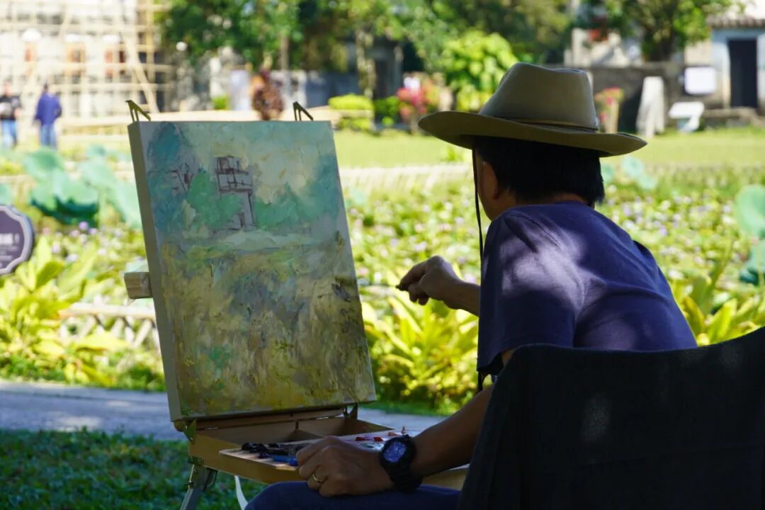 在月山鎮大崗村,文化廣場干凈整潔,小橋流水人家的景象如一幅淡彩水墨畫卷徐徐展開,這些充滿煙火氣息的鄉村場景,同樣成為了美術家們創作的天然“富礦”。大家或駐足于庭院建筑前細細觀察,或在小巷轉角處手揮畫筆,盡情捕捉著鄉村的每一處細膩與生動,以藝術之力留存鄉愁、見證蝶變。