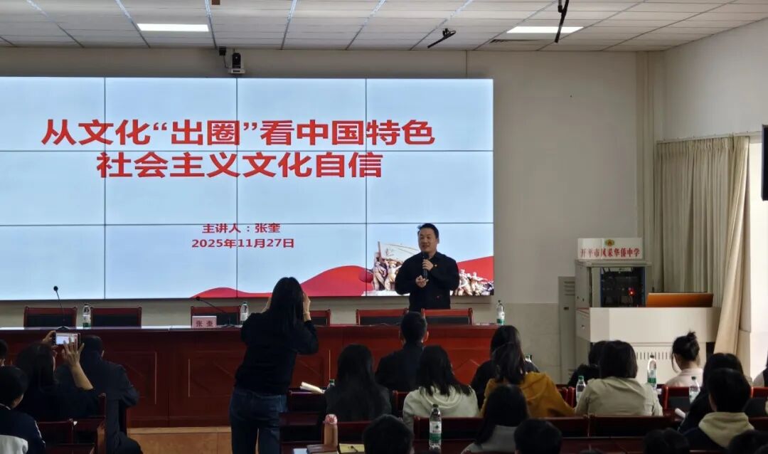 華南理工大學(xué)馬克思主義學(xué)院團(tuán)委書記張奎為師生作主題宣講,緊扣文化“出圈”這一時(shí)代熱點(diǎn),深入解讀了其中蘊(yùn)含的文化自信密碼。以鮮活例證和深刻分析,引導(dǎo)師生深刻感悟中國特色社會(huì)主義文化的強(qiáng)大生命力,進(jìn)一步堅(jiān)定了大家的文化信念。