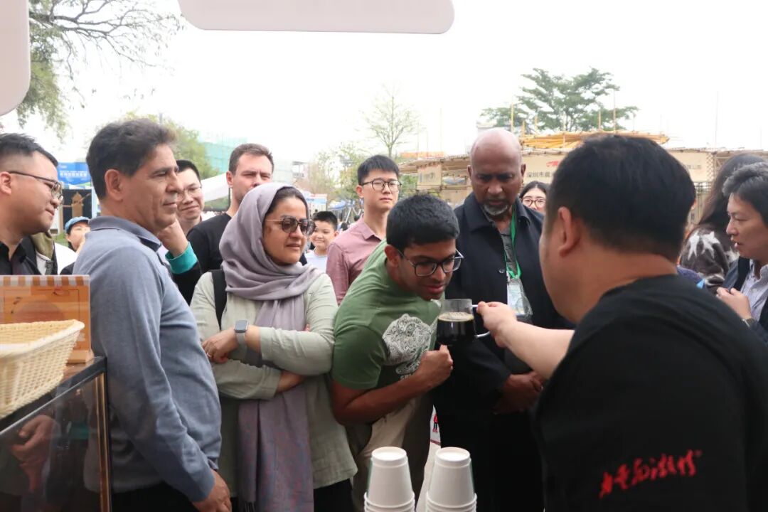 在大賽配套活動中,外國友人現場品咖啡、逛市集,了解先進咖啡設備,并在“即學即會”手沖咖啡公益課上體驗咖啡沖煮。