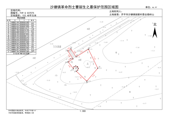 保護范圍:保護紅線往外延伸5米,紅線內面積153.48平方米。