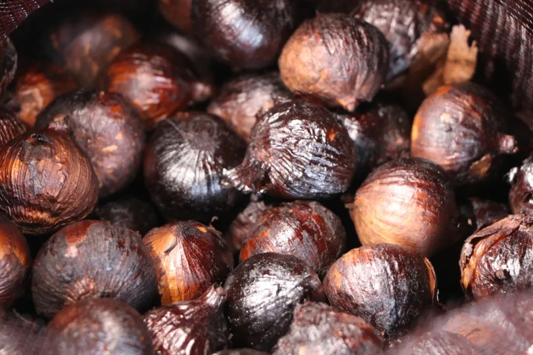 這種匠心獨具的煙熏工藝,造就了金山火蒜“蒜衣深褐如炭、肉質甘甜膠潤,辛辣中裹挾著草木焦香”的獨特風味。未經熏烘的蒜頭易發芽、招蟲,而經過熏制的火蒜保存時間大大延長。正是這種特性,讓它在19世紀末成為下南洋、闖金山的開平華僑行囊中不可或缺的“護身符”。