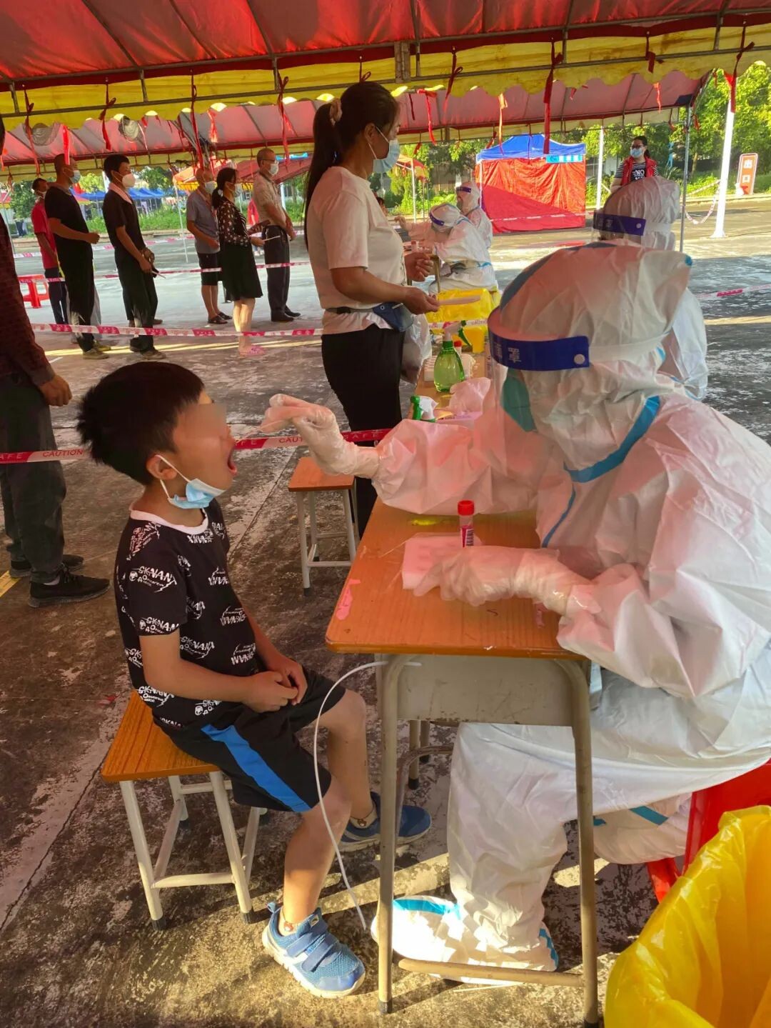 這次戰(zhàn)疫,背后還有很多感人故事。隊(duì)長(zhǎng)陳景成、隊(duì)長(zhǎng)關(guān)敏容已連續(xù)帶隊(duì)作戰(zhàn)了四天;關(guān)炳亮同志去江門封控區(qū)支援回來(lái)居家隔離完畢后的第二天,立馬投入這次全市核酸采樣工作中;還有部分隊(duì)員早上5點(diǎn)出發(fā)鄉(xiāng)鎮(zhèn)核酸采樣,中午隨便吃個(gè)飯后,下午2點(diǎn)多又立馬投入市區(qū)的采樣工作中,一直奮戰(zhàn)到晚上11點(diǎn)多,回到家已是凌晨......