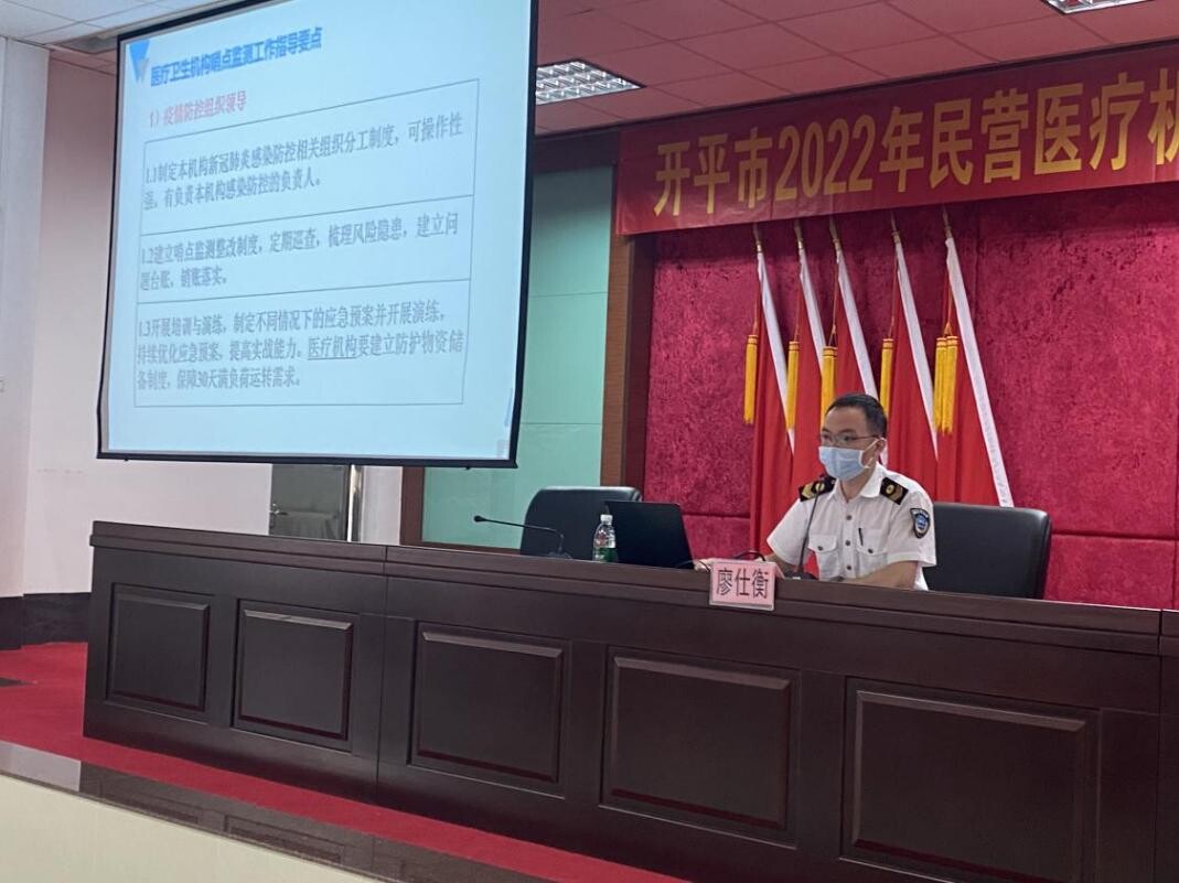 為進一步加強我市疫情防控工作,提高我市醫(yī)療服務質量水平,8月19日上午,開平市衛(wèi)生監(jiān)督所在開平市委黨校禮堂舉辦2022年民營醫(yī)療機構新冠肺炎疫情防控專題培訓班,轄區(qū)內92家民營機構共計104名主要負責人或管理人員參加了培訓。