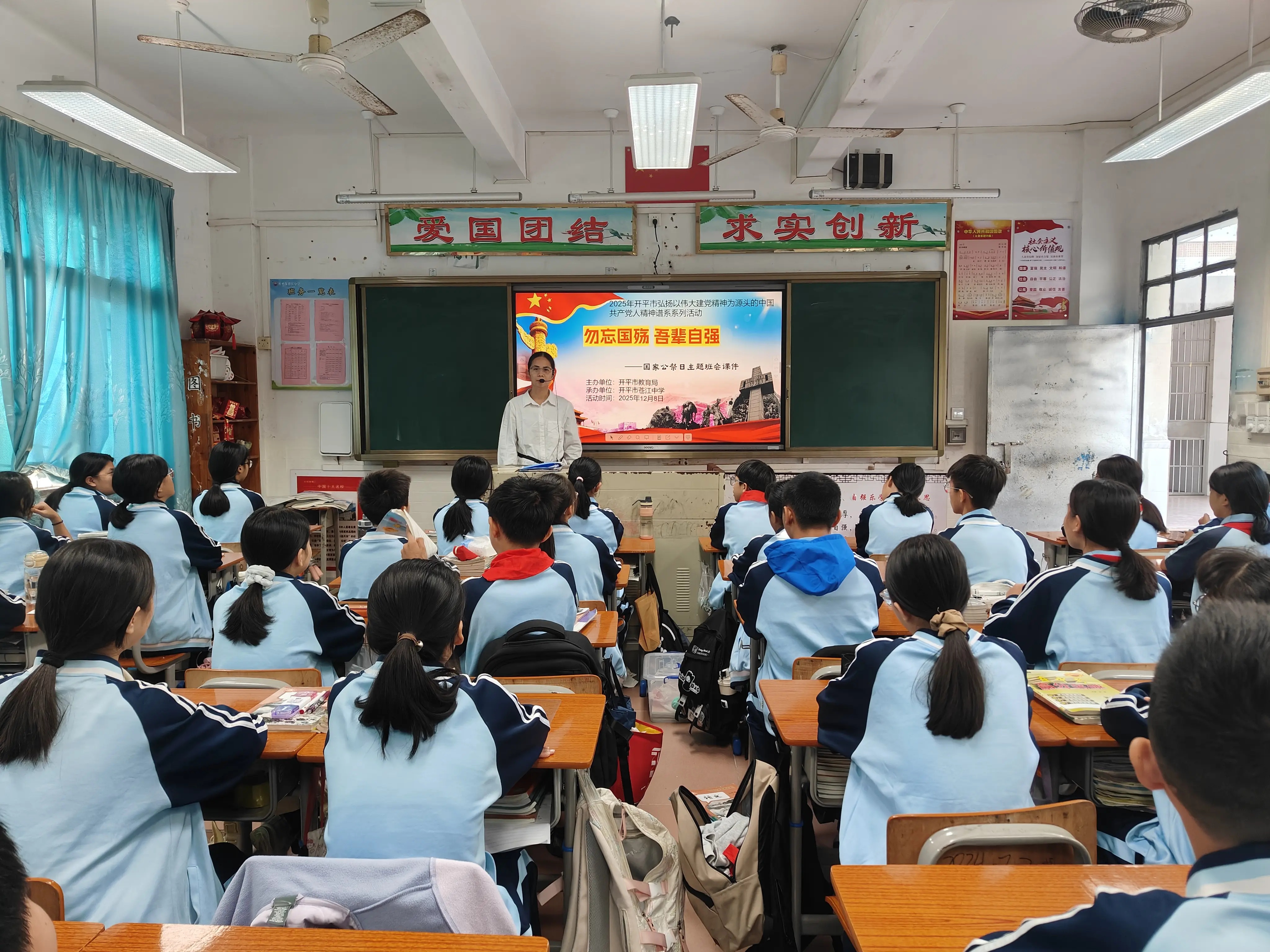 為教育和引導廣大青少年銘記歷史,激發其愛黨愛國之情和民族使命感,由開平市教育局主辦的2025年開平市弘揚以偉大建黨精神為源頭的中國共產黨人精神譜系系列活動——國家公祭日主題教育系列活動走進轄內中小學。
