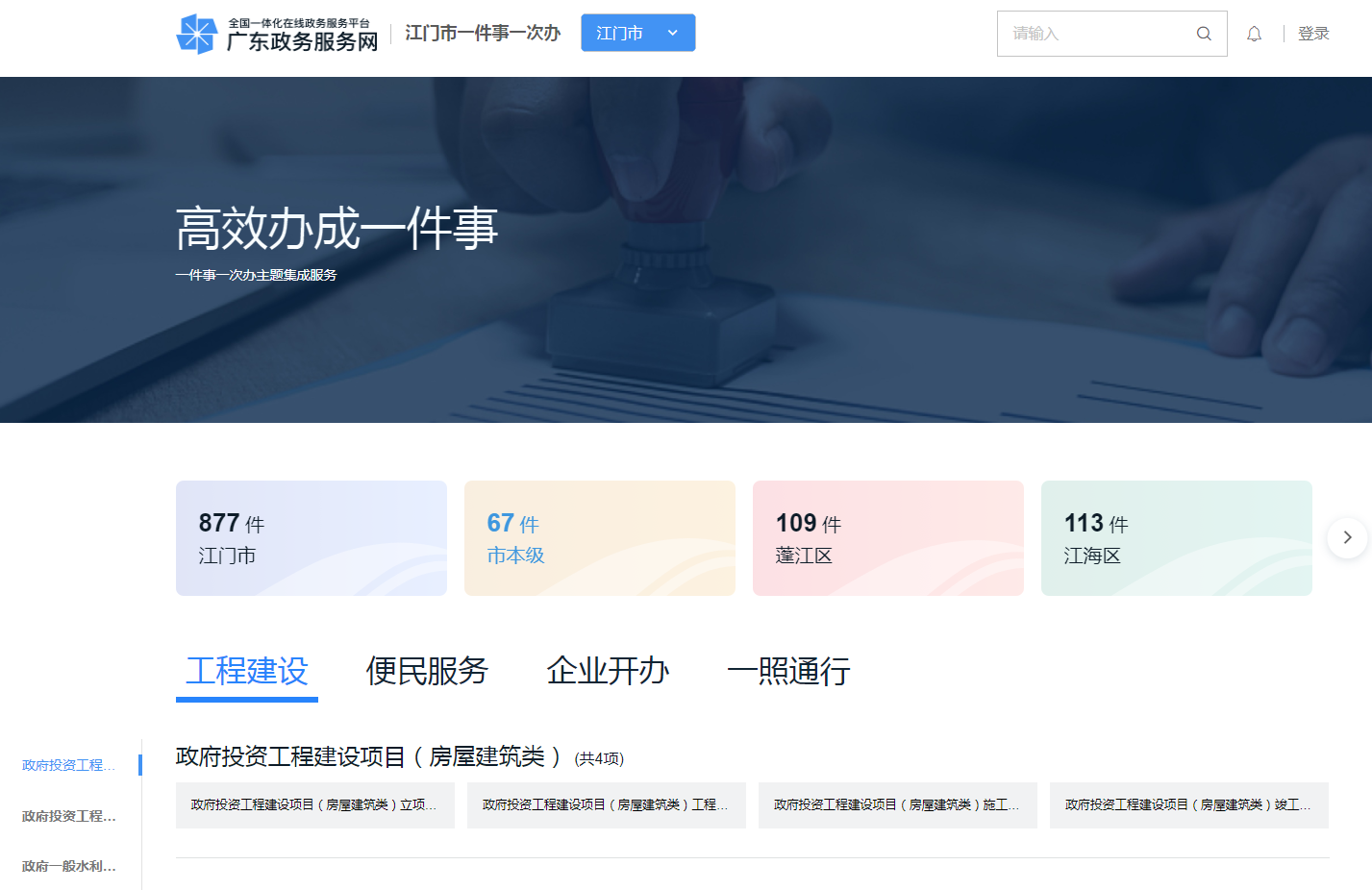 登錄廣東政務(wù)服務(wù)網(wǎng),切換到江門市(https://www.gdzwfw.gov.cn/?region=440700),輸入一件事主題名稱,點(diǎn)擊搜索,或在特色創(chuàng)新模塊點(diǎn)擊【高效辦成一件事】,選擇“開平市”對(duì)應(yīng)需要辦理的一件事服務(wù),按流程在線操作即可完成辦理。
