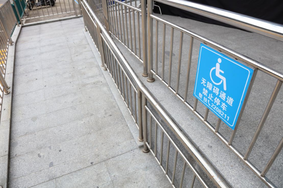 大廳內(nèi)設(shè)置無障礙服務(wù)專區(qū),提供輪椅、拐杖、老花鏡、助聽器、放大鏡、急救箱等便民設(shè)備,滿足特殊群體多樣化需求。同時,劃定無障礙停車位,方便殘障人士及老年人車輛停放。