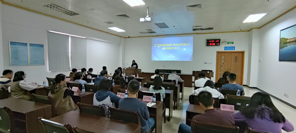 為切實用好江門市政務服務一體化平臺V2.0,提升鎮(街)政務服務工作人員業務水平,更好地滿足企業群眾辦事需求,市政數局于3月22日下午組織鎮(街)公共服務中心負責人、窗口服務人員共30多人參加業務培訓。 培訓由數字廣東網絡建設有限公司江門市分公司駐點開平市的工程師進行授課,內容包括一體化平臺V2.0審批業務流程、審批模塊介紹、系統操作指引、審批常見問題等四方面,并與參訓人員進行現場互動,答疑解惑。 通過培訓交流,使窗口審批人員對江門市政務服務一體化平臺V2.0有了更深一步的認識,對提升日常的業務操作能力打下堅實基礎。 建設江門市政務中臺和政務服務一體化平臺V2.0,是落實國家、省提升“一網通辦”能力,“高效辦成一件事”等工作部署,以標準化統籌政務服務渠道和推動線上線下協同服務的重要舉措,是優化政務服務、提升行政效能的重要抓手。市政數局要求我市各級實體辦事大廳對此要有充分的認識,并結合工作實際,堅持貫徹上級“標準規范、四級統一”的工作要求,推動綜合服務窗口受理業務“全線辦、進中臺、統一辦”,同時要及時反饋實際使用中遇到的難點、堵點問題,協力促進系統平臺功能完善優化,穩步提升基層政務服務線下服務能力,為我市深入實施“百縣千鎮萬村高質量發展工程”貢獻一份力量。
