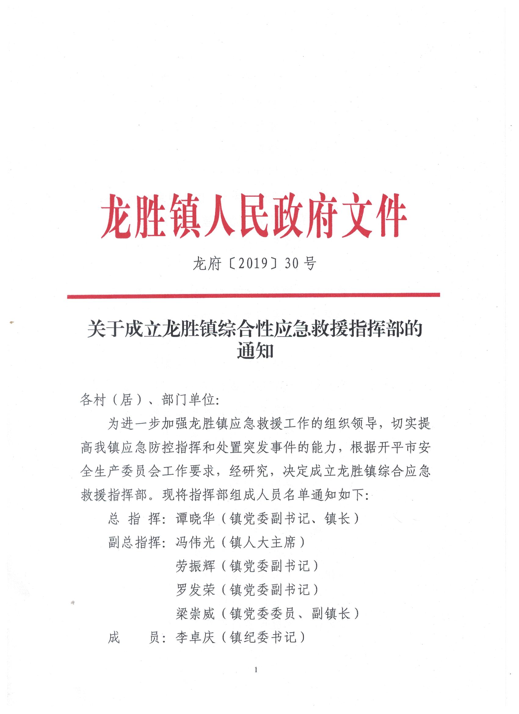 關于成立龍勝鎮綜合性應急救援指揮部的通知