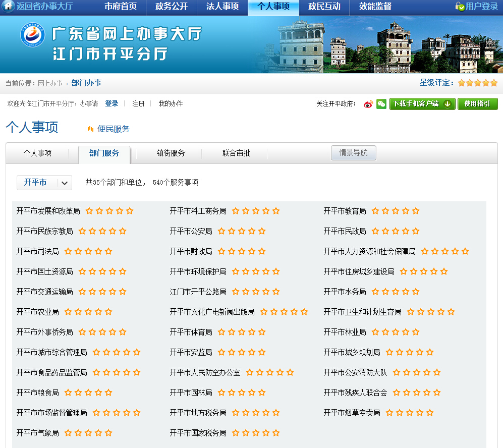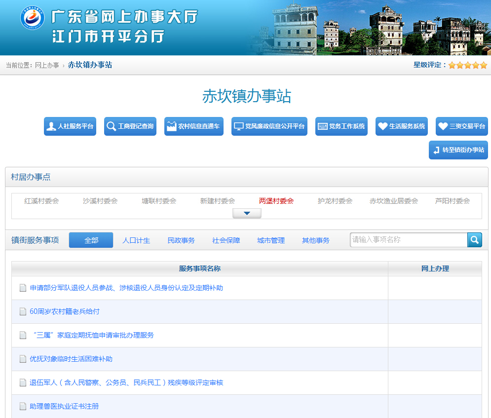 圖7:開平市網上辦事大廳基層公共服務平臺