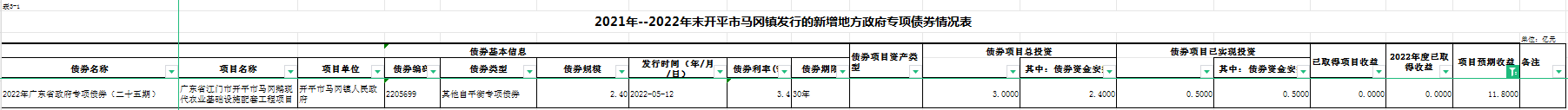 開平市馬岡鎮2022年政府債券存續期信息公開