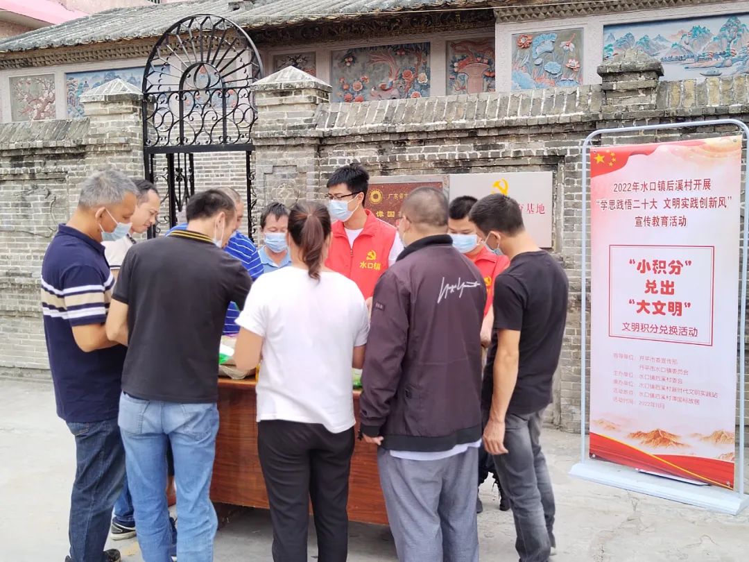 記者也了解到,水口鎮依托黨員教育基地譚國標故居,打造文明實踐陣地,從鄉村基層治理的短板入手,實施鄉風文明積分制,將黨員、群眾參加志愿服務等行為進行量化積分,通過設立“文明超市”,實行物質、精神雙重獎勵。同時充分利用后溪水口園村民廣場的環境基礎,打造黨建小廣場,把黨建陣地延伸到人民群眾家門口,實現了黨員教育陣地從室內轉變向室外延伸、教育模式從相對封閉轉變為對外開放、教育對象由黨員主體擴大到廣大群眾的三個轉變。