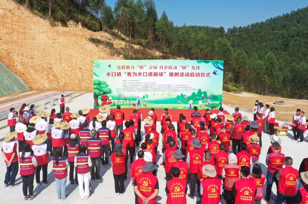 領導嘉賓為水口鎮網格員護綠志愿服務隊、黨員先鋒植綠志愿服務隊、團員青年愛綠志愿服務隊等3支隊伍進行授旗,全面鋪開綠美生態建設工作,迅速掀起“我為水口添新綠”的熱潮。