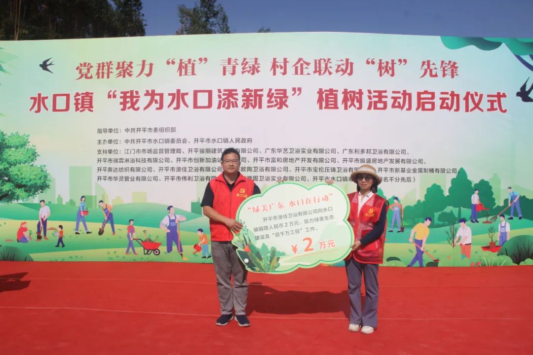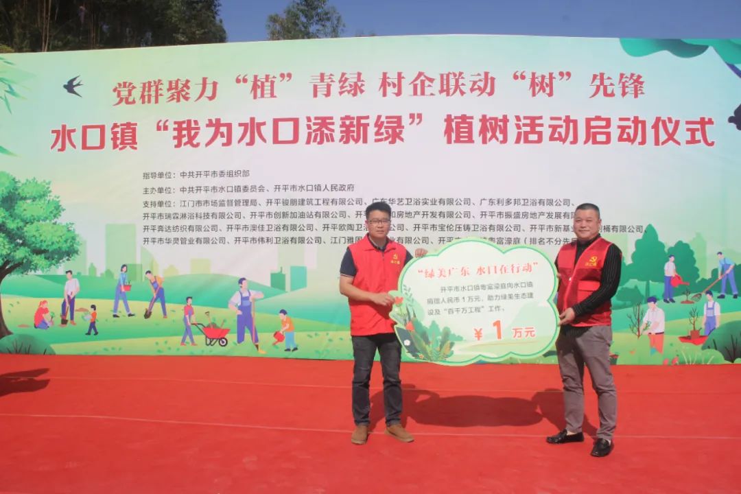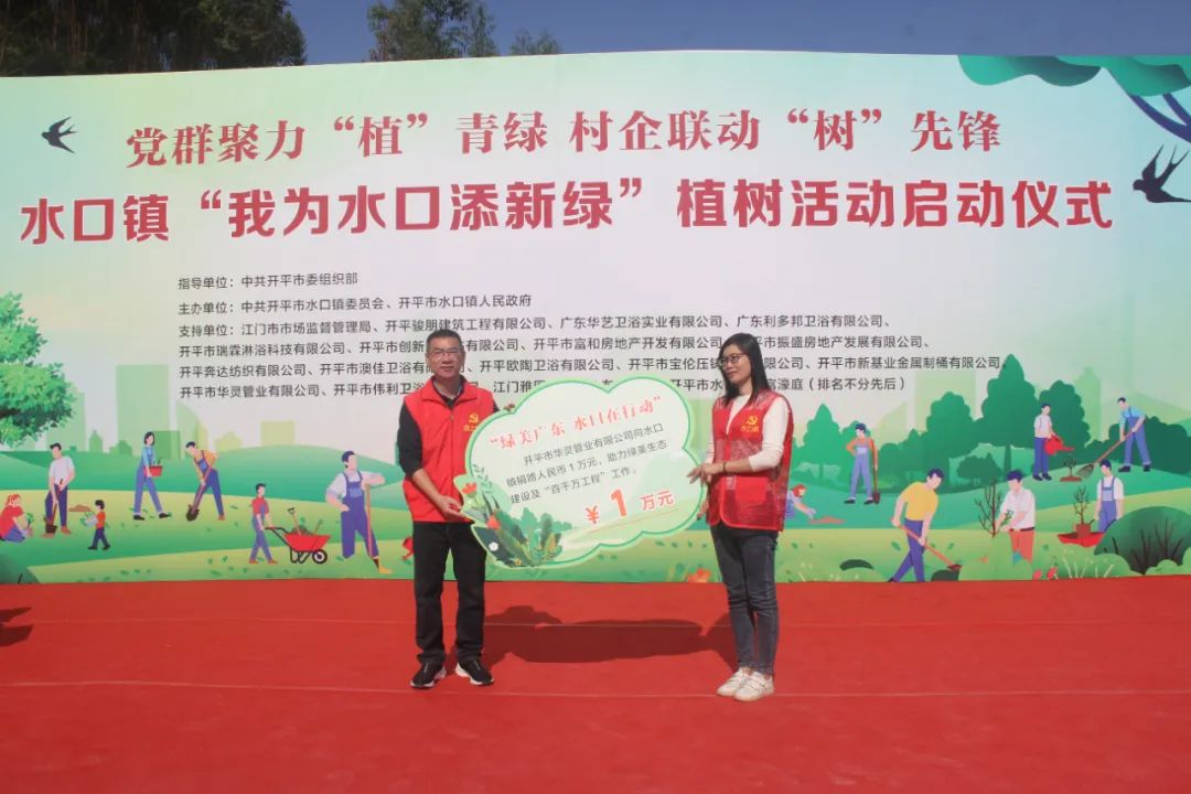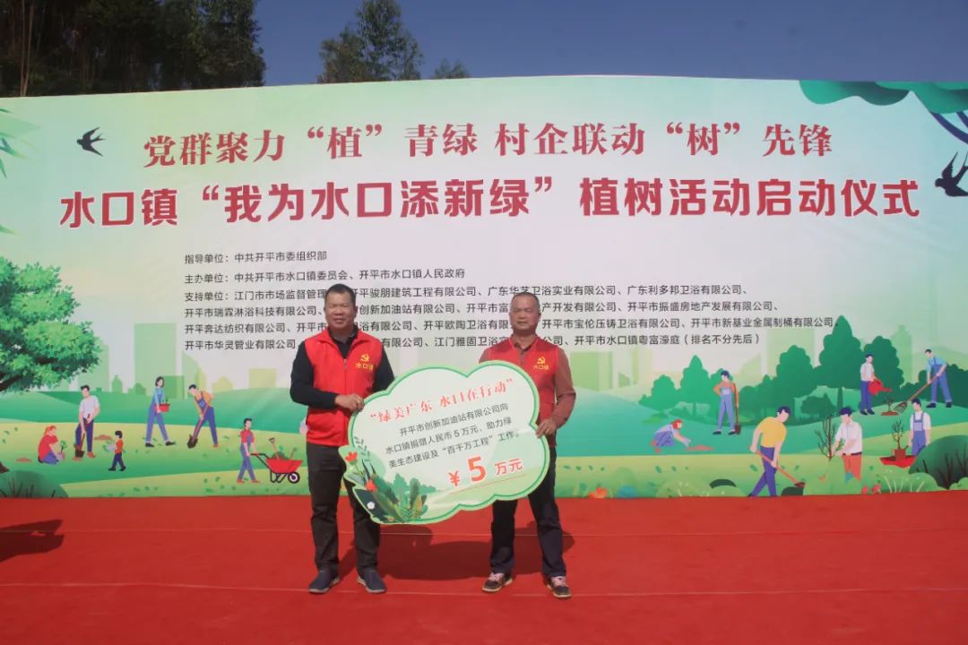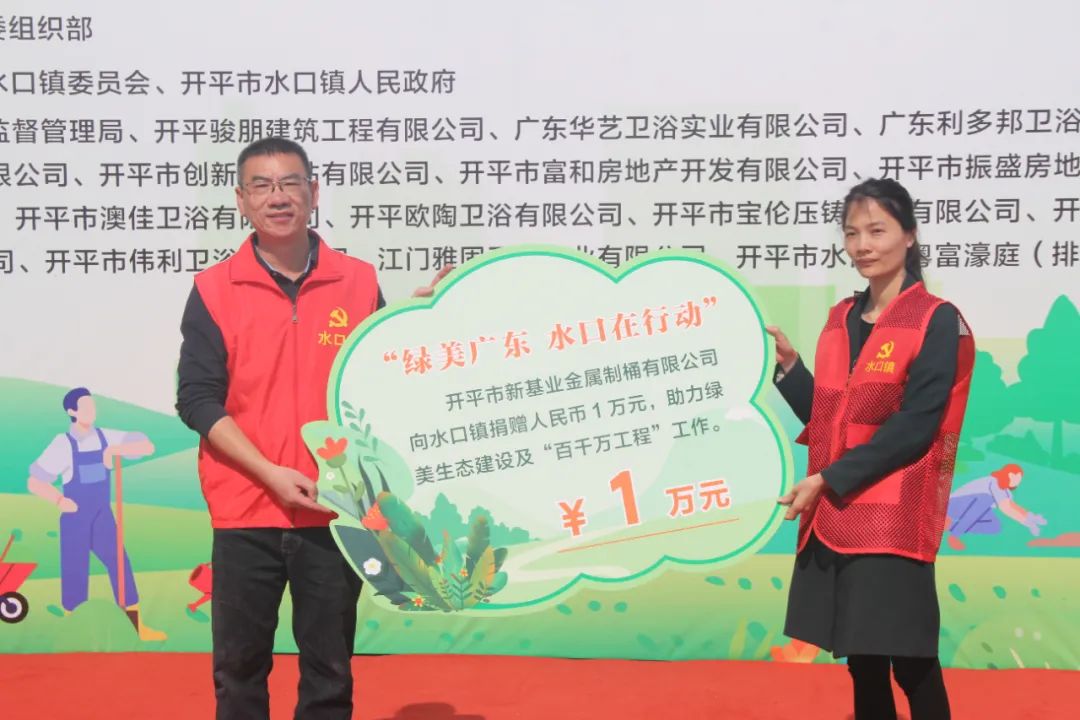 儀式上,結對幫扶單位江門市市場監督管理局和16家愛心企業向水口鎮人民政府捐贈人民幣共計75.097萬元,定向用于水口鎮鄉村綠化項目。