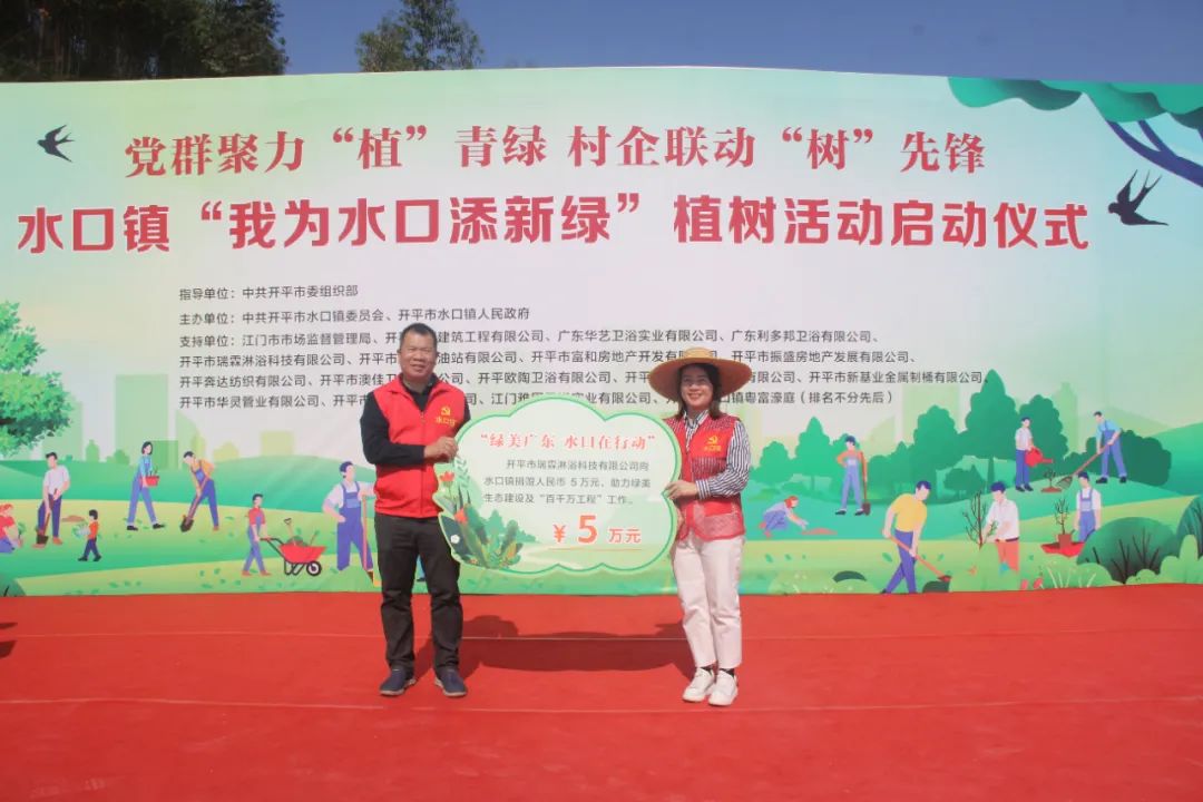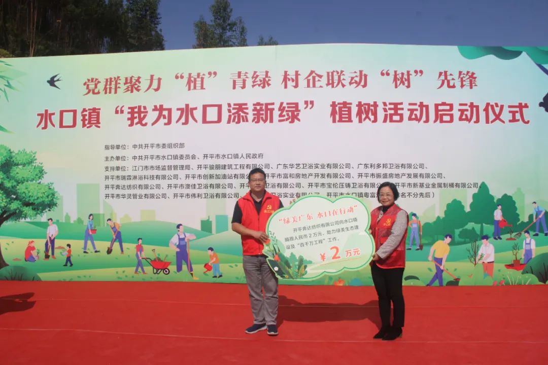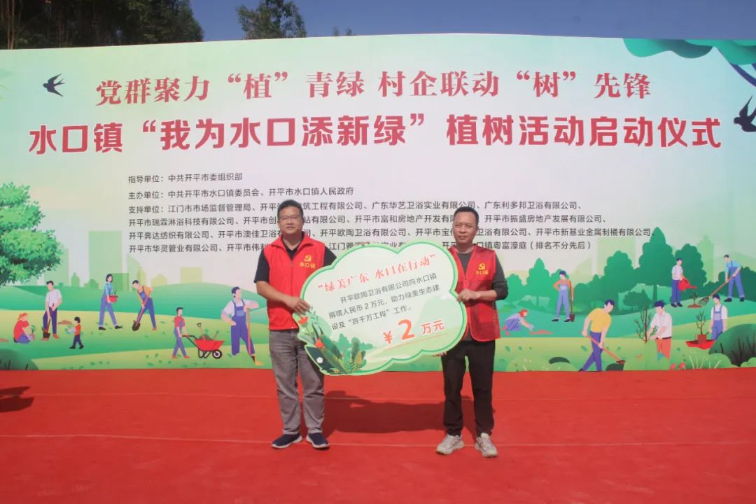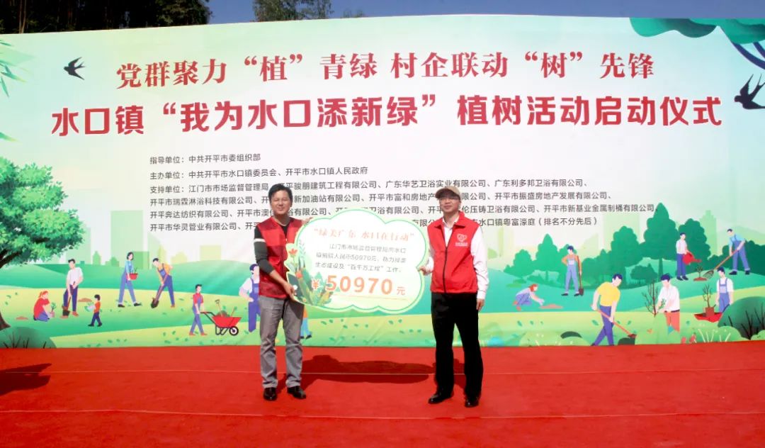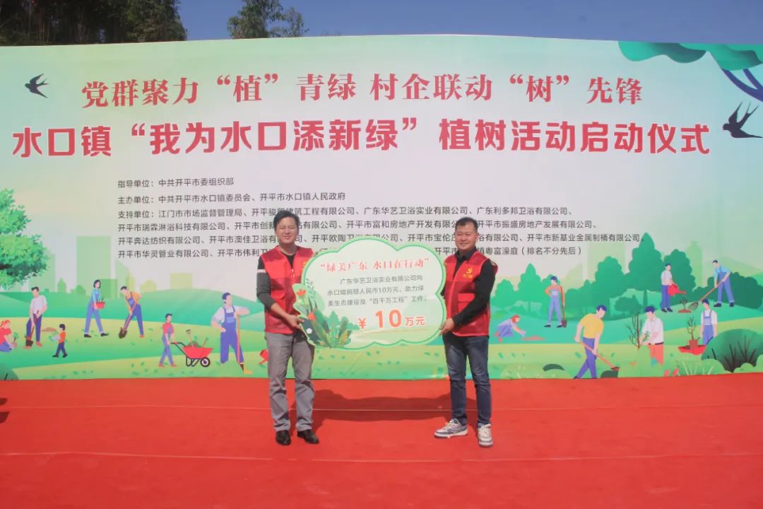 儀式上,結對幫扶單位江門市市場監督管理局和16家愛心企業向水口鎮人民政府捐贈人民幣共計75.097萬元,定向用于水口鎮鄉村綠化項目。