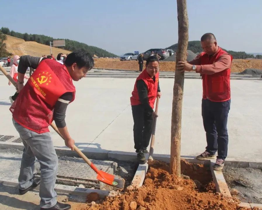 植樹現場,大家熱情高漲,干勁十足。黨員干部率先垂范,團員青年、企業家、網格員、志愿者積極參與。三人一組、五人一隊,有的揮鍬鏟土、提苗扶正,有的培土圍堰、提桶澆水,各個環節銜接有序,呈現一派熱火朝天的植樹景象。