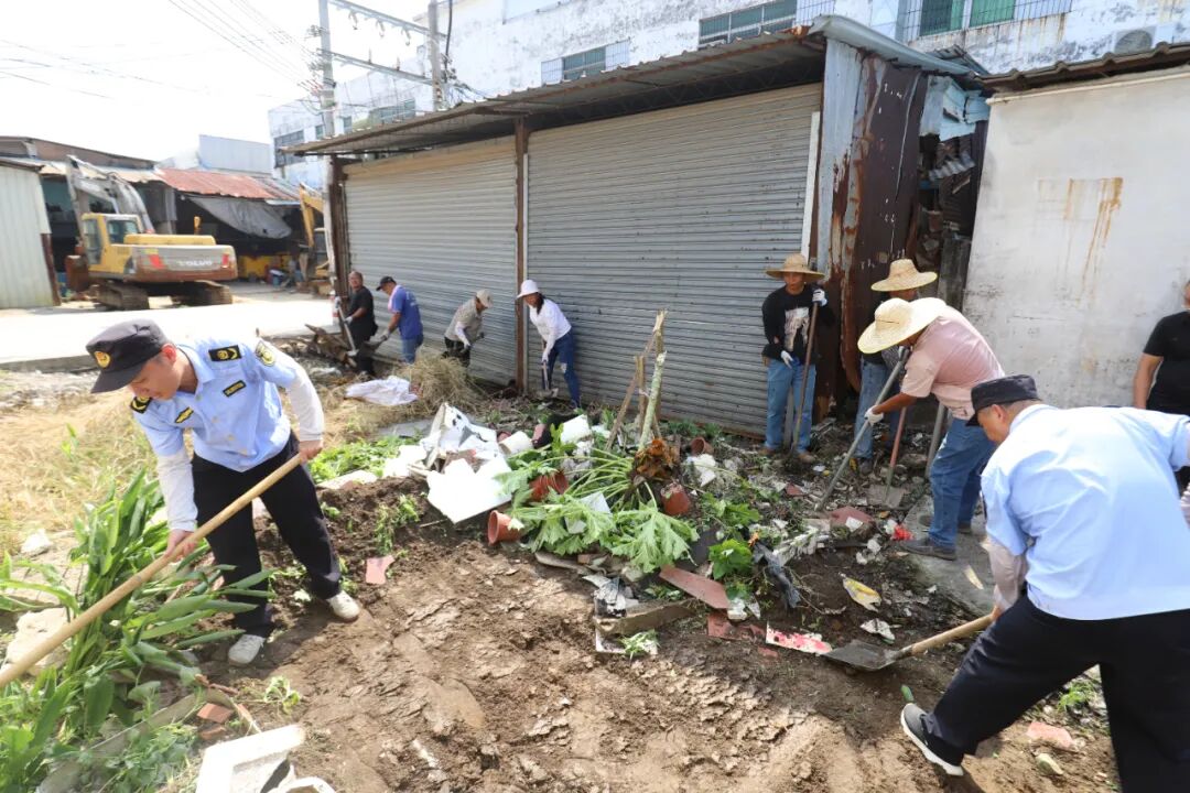 在向陽村,村干部用方言解讀愛國衛生運動意義,組建“清掃隊”,扛起掃帚向村內衛生死角“宣戰”;在人民社區,志愿者與攤主攜手清理攤位周邊雜物,“齊心滅蚊一小步、城市文明一大步”的標語在市場內格外醒目;在岡中村,黨員志愿者兵分兩路,一隊清理田間灌溉溝渠的雜草淤泥、疏通積水,一隊逐戶協助村民整理庭院角落、清除蚊媒孳生地,既守護農田生產環境,又改善村民居住條件,贏得群眾紛紛點贊。