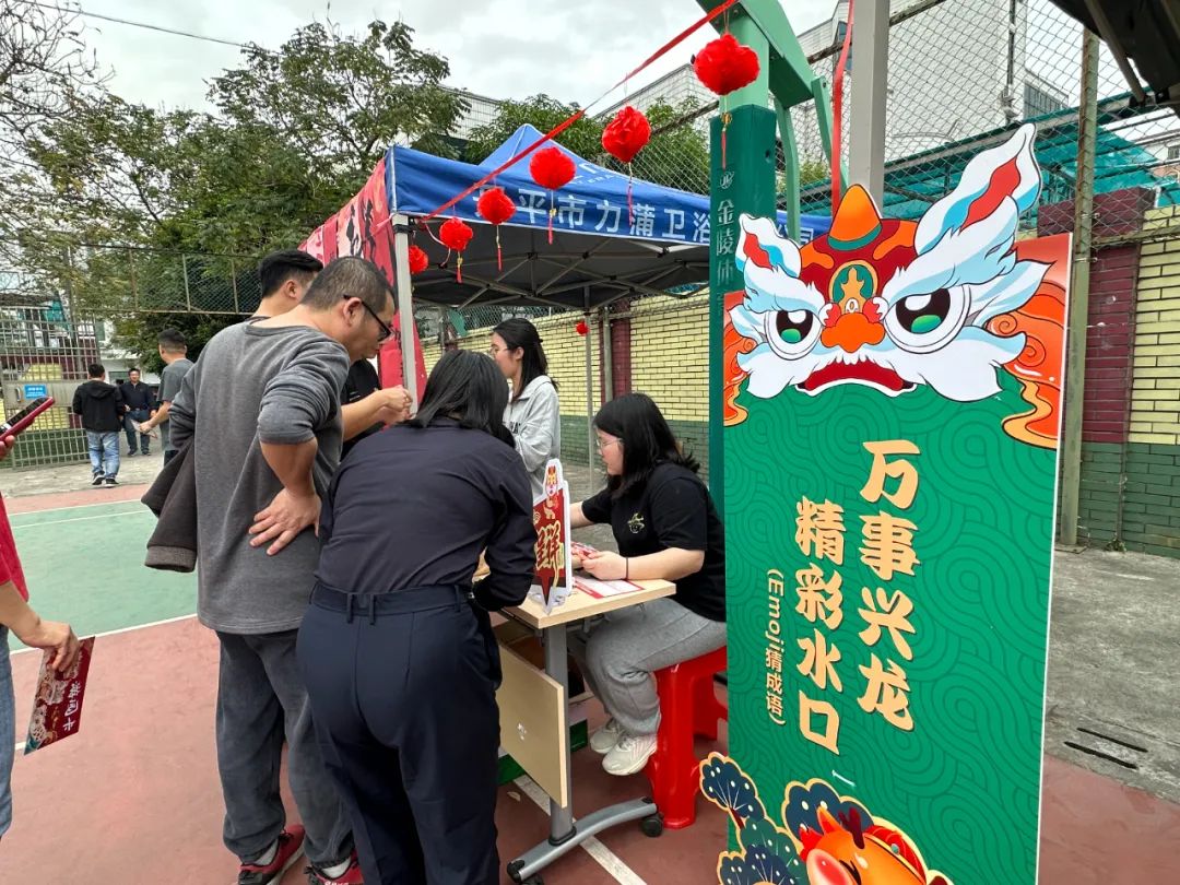 游園活動現場設置了豐富的游戲項目,分別是“欣欣向龍,幸福水口(粘球飛鏢)”“龍飛鳳舞,魅力水口(紙杯抽紙)”“雙龍戲珠,團結水口(旱地龍舟)”“龍行大運,奮進水口(滾滾樂)”“逾躍龍門,團結水口(筷子取杯)”“龍騰虎躍,健康水口(乒乓球五子棋)”“萬事興龍,精彩水口(emoji猜成語)”“好運龍龍,活力水口(套圈圈)”“‘龍’重登場。啟起新歲(祝福寄語)”。