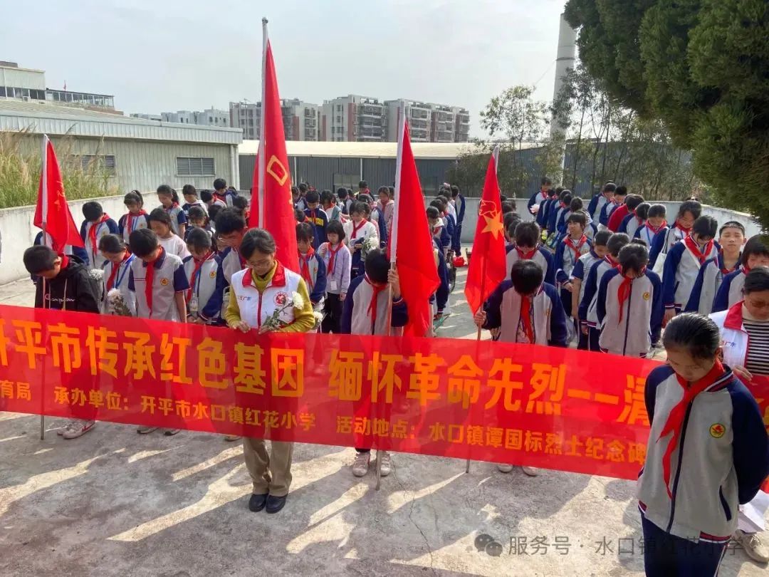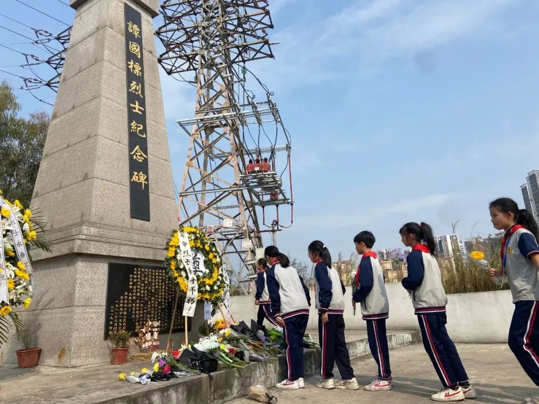 水口鎮(zhèn)紅花小學(xué)師生代表懷著無比崇敬的心情,前往譚國標(biāo)烈士紀(jì)念碑開展清明祭掃活動(dòng)。蒼松翠柏掩映下的烈士紀(jì)念碑前,同學(xué)們面向紀(jì)念碑齊聲高唱中國少年先鋒隊(duì)隊(duì)歌,清脆嘹亮的歌聲飽含對先烈的追思與敬仰。隨后,全體人員整齊列隊(duì),肅立默哀。緊接著,全體在場師生依次獻(xiàn)上手中的鮮花,寄托對烈士的深深哀思與崇高敬意。活動(dòng)結(jié)束后,同學(xué)們寫下了自己對先烈的敬仰與追思,表示要繼承先烈遺志,勤奮學(xué)習(xí),努力成為棟梁之材,為實(shí)現(xiàn)中華民族偉大復(fù)興的中國夢貢獻(xiàn)力量。