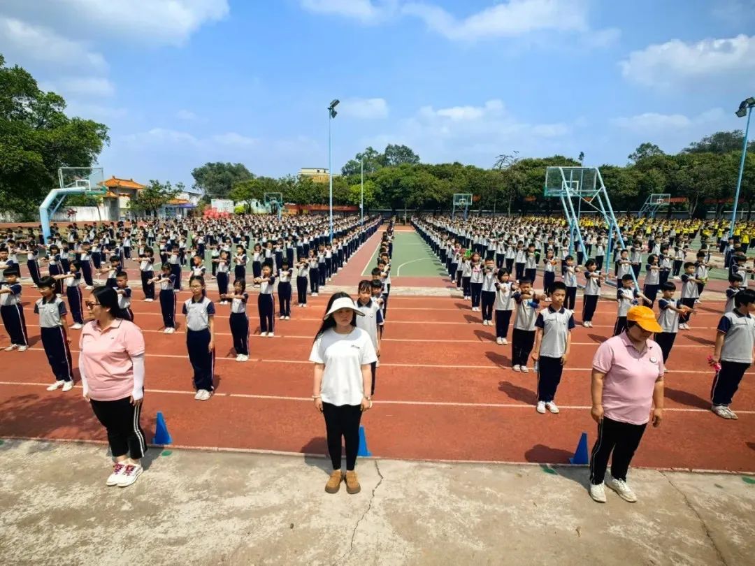 水口鎮(zhèn)泮村小學(xué)學(xué)生身著統(tǒng)一運動服,在廣播體操環(huán)節(jié),每個動作精準到位,伸展、跳躍一氣呵成;跑操時,全校學(xué)生步伐整齊,口號聲回蕩校園,跑道化身為躍動的風(fēng)景線。