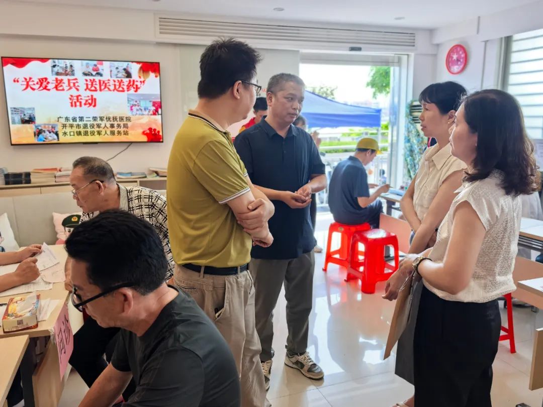 為大力弘揚(yáng)擁軍優(yōu)屬、擁政愛(ài)民的光榮傳統(tǒng),切實(shí)關(guān)心關(guān)愛(ài)退役軍人身體健康,提升轄區(qū)退役軍人及家屬健康意識(shí),傳遞黨和政府的關(guān)懷,8月12日,江門(mén)市、開(kāi)平市、水口鎮(zhèn)三級(jí)退役軍人事務(wù)系統(tǒng)聯(lián)合廣東省第二榮軍優(yōu)撫醫(yī)院到水口鎮(zhèn)退役軍人服務(wù)站開(kāi)展“關(guān)愛(ài)老兵 送醫(yī)送藥”活動(dòng),為軍烈屬、老復(fù)員軍人、因戰(zhàn)殘疾軍人、參戰(zhàn)退役人員等退役老兵和其他優(yōu)撫對(duì)象提供專(zhuān)業(yè)便捷的醫(yī)療服務(wù)。