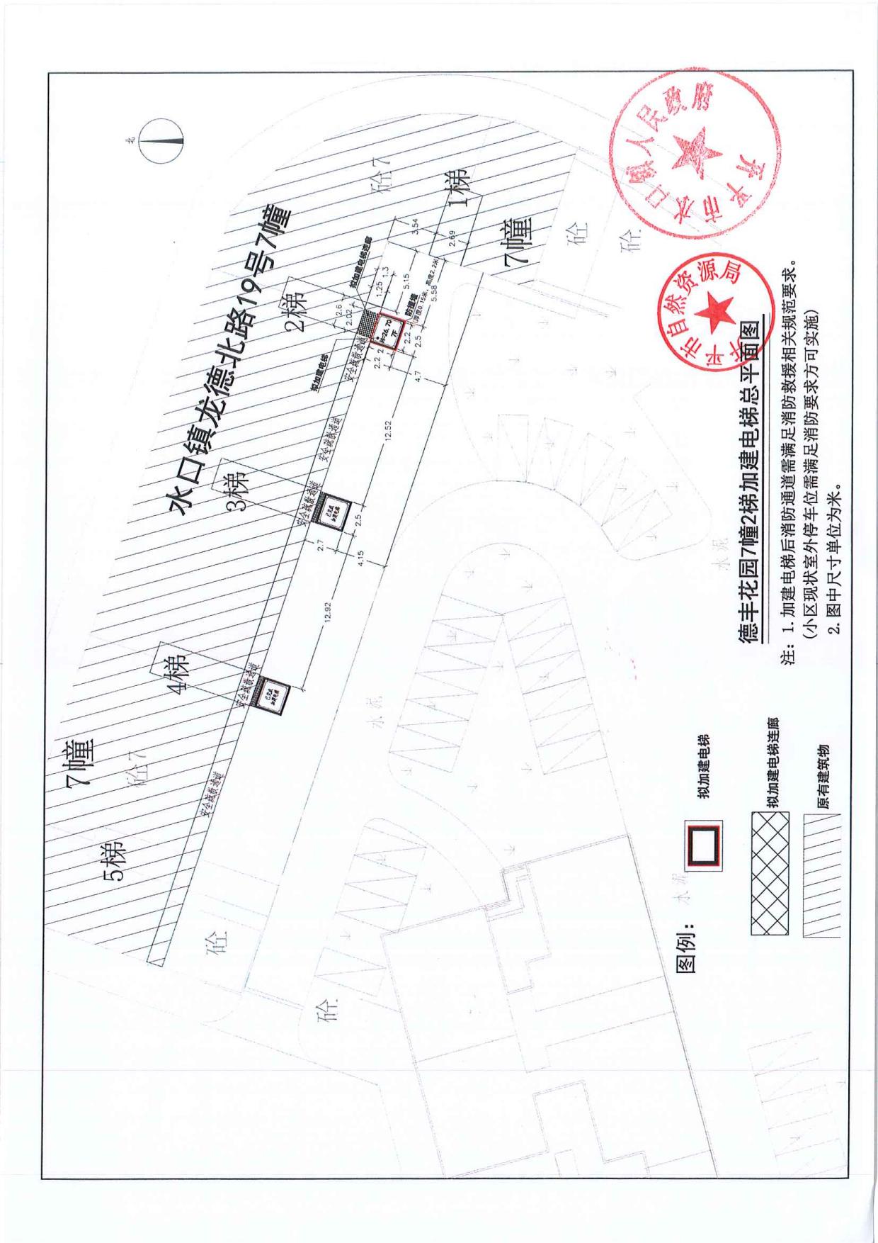 關于開平市水口鎮龍德北路19號7幢2梯申請加建電梯,加建電梯的具體位置和尺寸詳見附圖。
