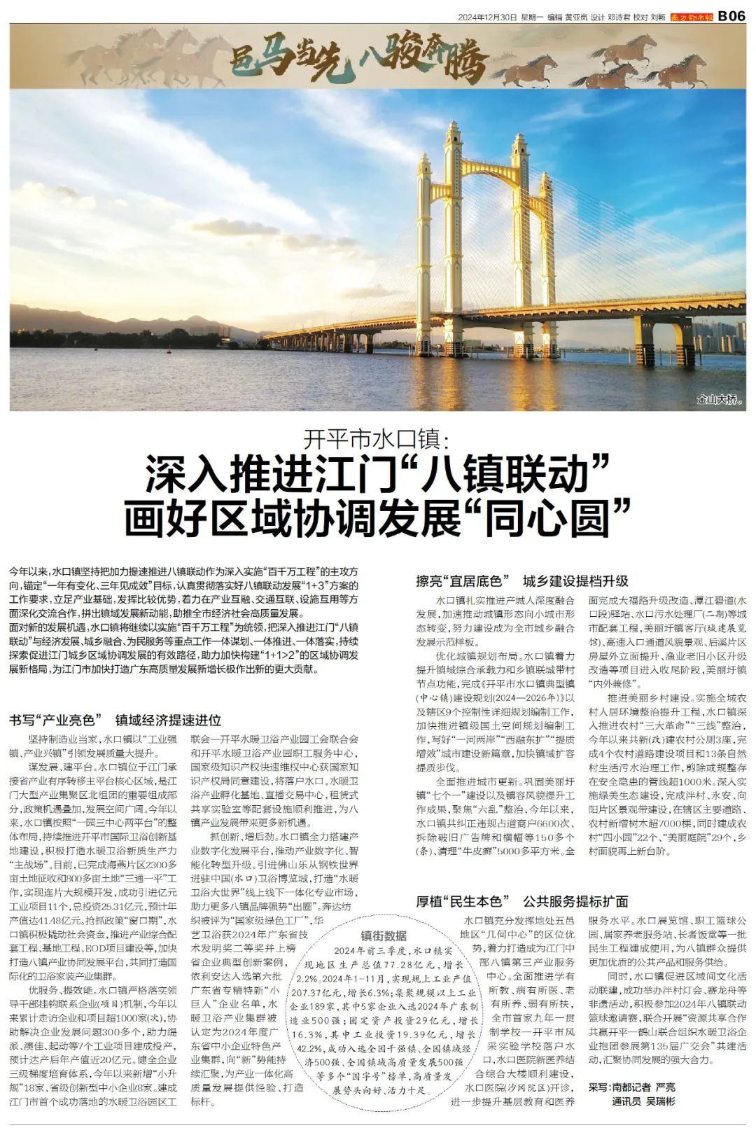 近日,江門市發展和改革局、南方都市報社聯合出品《邑馬當先·八駿奔騰》江門八鎮聯動特別報道,全方位展現江門中部八鎮探索促進開創城鄉區域協調發展的創新實踐。