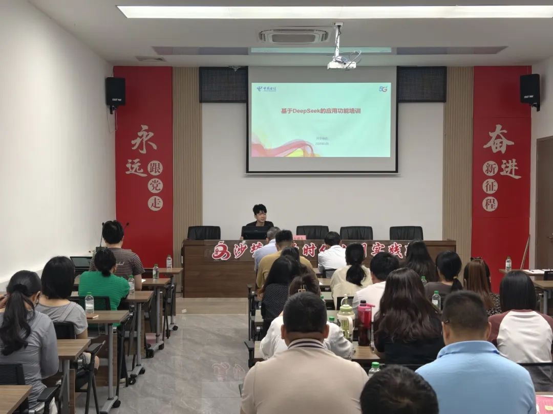 此次培訓(xùn)特邀中國(guó)電信開平分公司解決方案經(jīng)理譚俊濤授課,圍繞DeepSeek的使用方式、DeepSeek+場(chǎng)景應(yīng)用、DeepSeek的應(yīng)用安全等方面進(jìn)行詳細(xì)講解,并結(jié)合實(shí)際案例演示了DeepSeek優(yōu)化公文處理、進(jìn)行數(shù)據(jù)分析、精準(zhǔn)解讀政策等功能,直觀地展示了DeepSeek對(duì)于提高日常工作效率的重要作用。