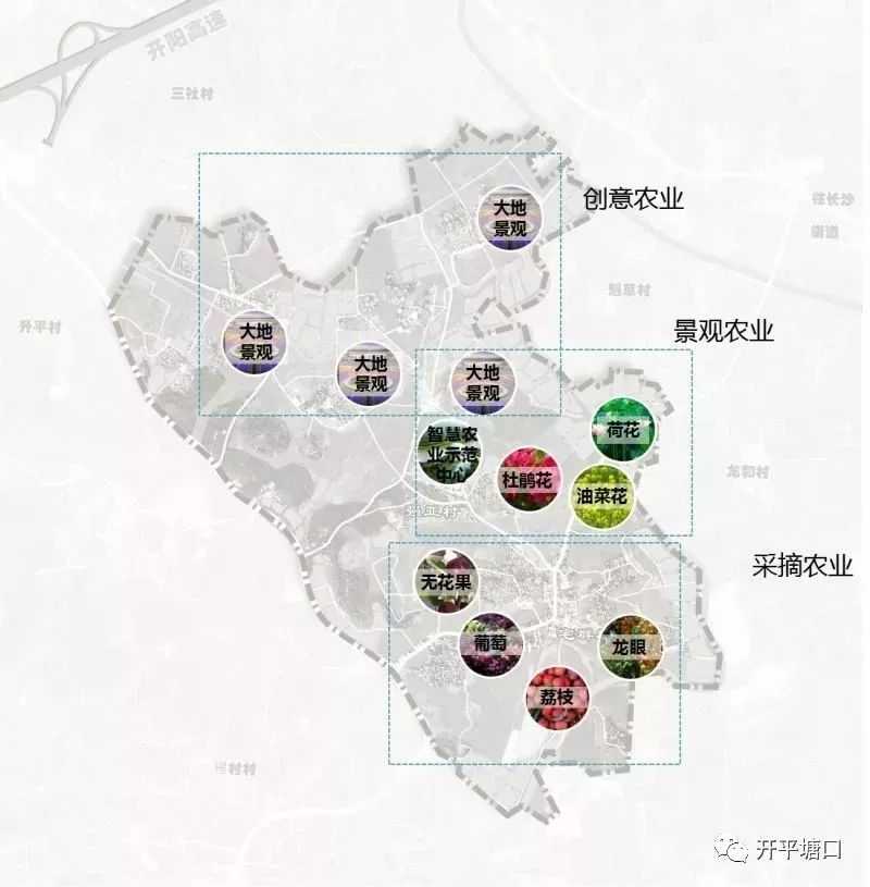 以“一心、四景”為產業布局,“一心”即建設智慧農業示范中心,做創意農業、景觀農業、采摘農業的示范區。“四景”即打造連片的大地景觀。