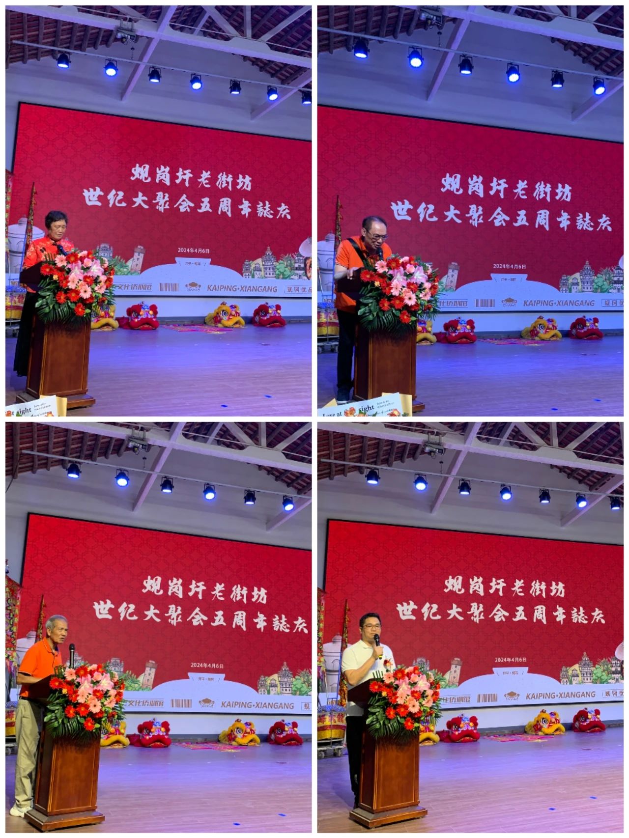 4月6日,蜆岡圩老街坊世紀大聚會五周年誌慶在蜆岡煲仔飯劇場舉行。街坊們身體力行熱心支持蜆岡建設,齊聚劇場舉行慶祝活動,精心準備表演節目,為大家送上精彩紛呈的視聽盛宴,這充分展現了蜆岡圩街坊鄰里的深厚情誼,更展現了老街坊們對劇場發展的支持和關心。老街坊代表黃翠珠、海外華僑代表關錦富、新民月報社代表黃庚年和蜆岡鎮副鎮長關院紅分別上臺發言。 在街坊們的大力支持和大聚會籌委會的精心籌備下,精彩的醒獅表演、熱情洋溢的大合唱、韻味獨特的粵劇和彩帶舞等節目在煲仔飯劇場輪番上陣,僑鎮人文風情與煲仔飯美食的巧妙融合,不僅贏得了現場觀眾們的熱烈掌聲,而且還展現了蜆岡魅力僑鎮的獨特風采。 一起到溫馨懷舊的僑心煲仔飯劇場,品嘗料足味美的煲仔飯美食,登上百姓大舞臺一展風采,這已經成為了蜆岡的新潮流。相信在未來的日子里,蜆岡圩老街坊的日常聯系會更加緊密,鄰里關系會更加融洽,街坊情誼會更加深厚,蜆岡也會在大家的共同努力下越來越好。在活動此起伏的掌聲和歡呼聲中,大家共同收獲了對蜆岡圩老街坊的美好期盼,同時也收獲了對蜆岡發展的信心。