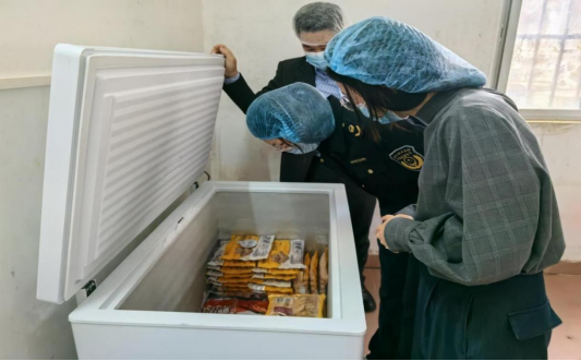 檢查組人員查閱轄區內每間學校的食堂食品衛生管理制度和營業執照,重點對食堂操作間、儲藏室、倉庫等區域的衛生情況進行細致檢查,現場查看原材料質量及食品貯存環境、貯存溫度等,并對人員健康證及操作規范進行逐一核對。此外,檢查組對學校內外小賣部、自動販賣機進行抽樣檢查,重點排查是否存在過期、變質食品等問題商品。